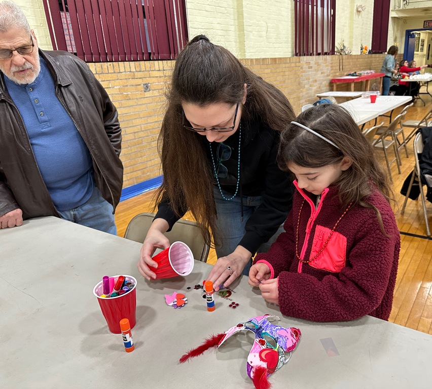 The Italian Heritage Club and the Mount Carmel / Blessed Sacrament Social Ministry celebrated “Carnevale” Saturday, March 1, in the gymnasium. The family-oriented event, organized by A.J. Valentini, was full of fun activities and sweet treats. Children were instructed on how to create colorful Carnevale masks and color Carnevale images. The children learned how to dance the traditional tarantella. The morning culminated in a parade of mask-wearing children and their adults to show off their handiwork and dancing prowess. Proceeds from the cookie sale go to the Abraham House.