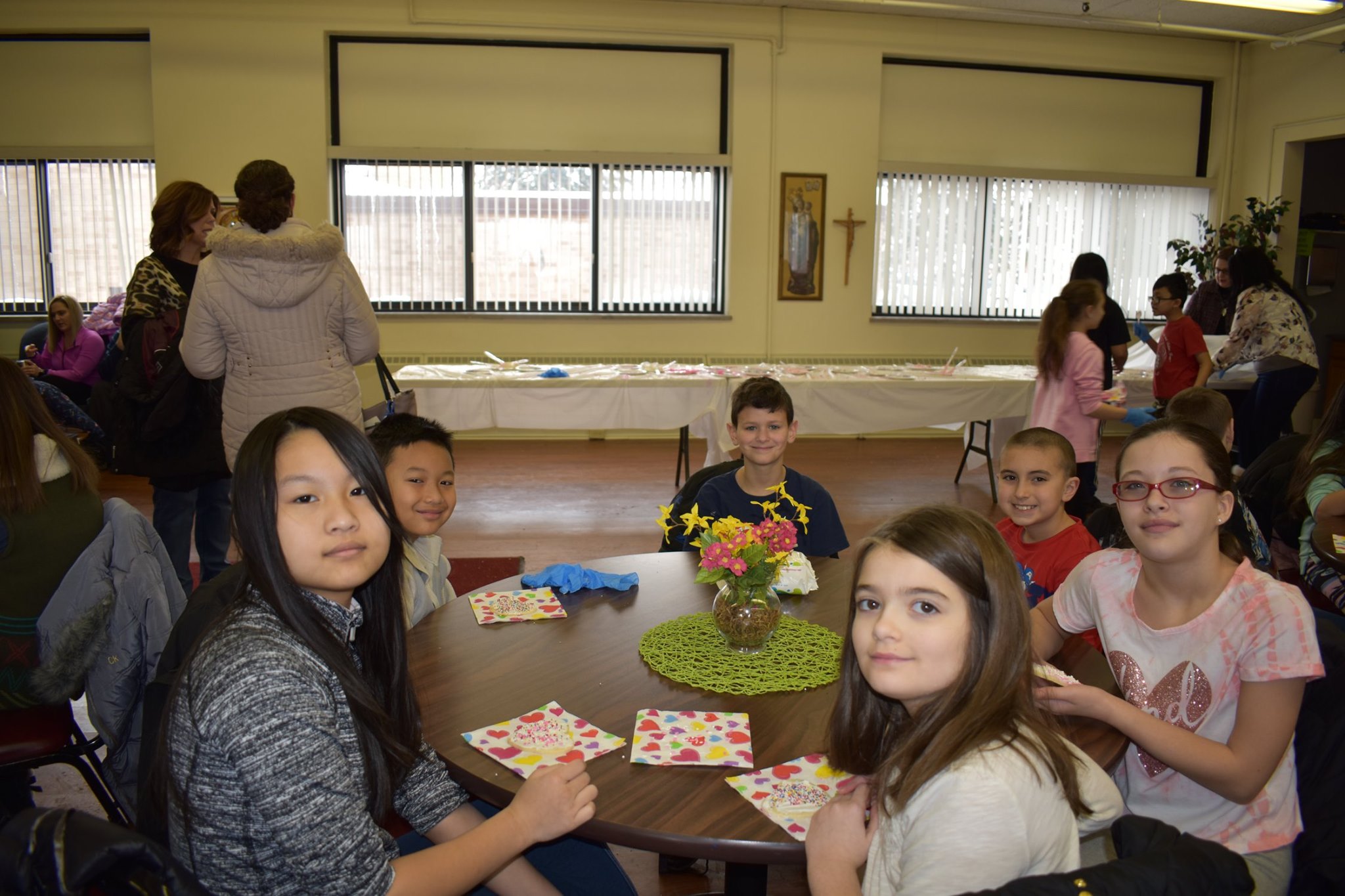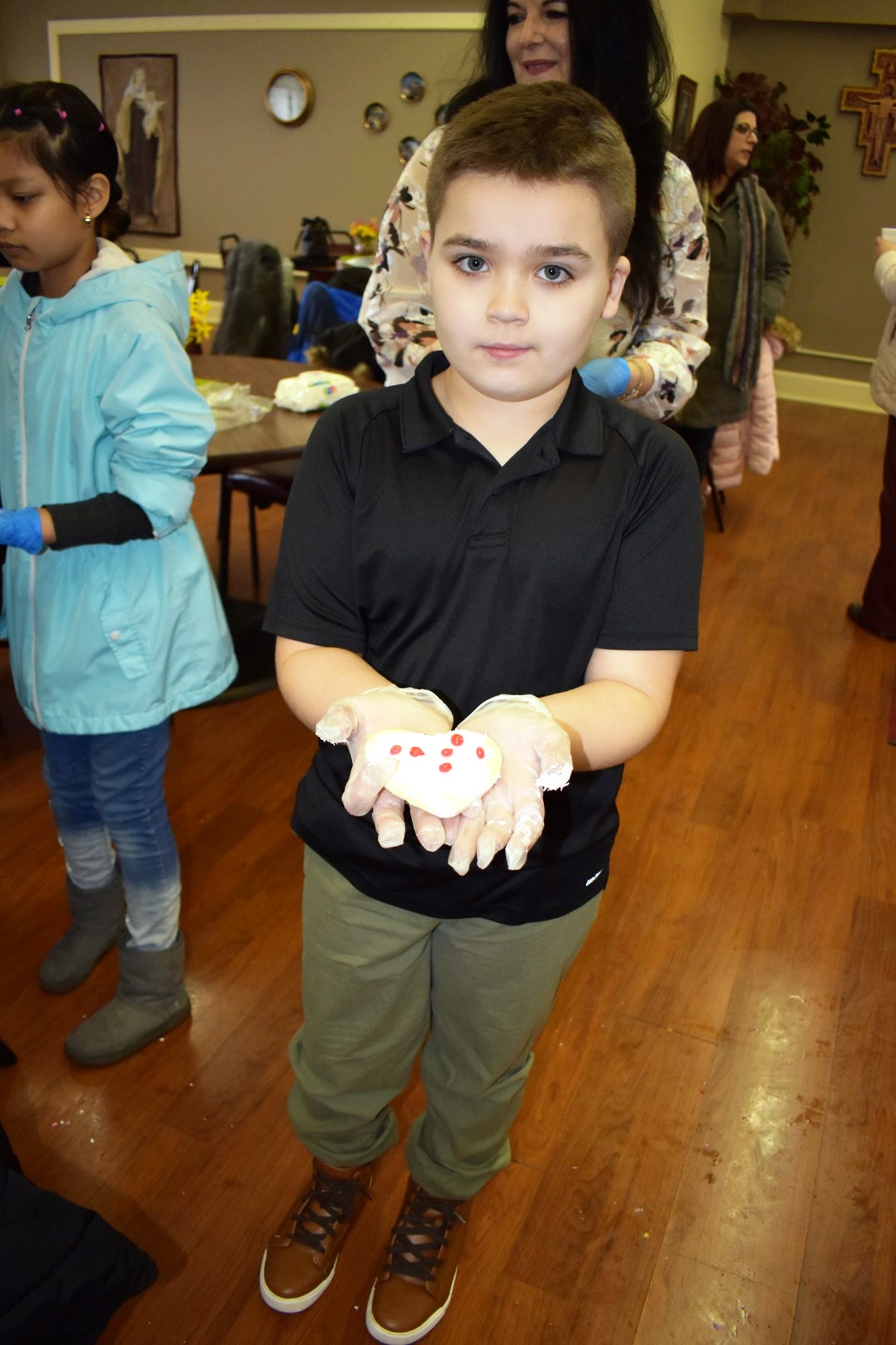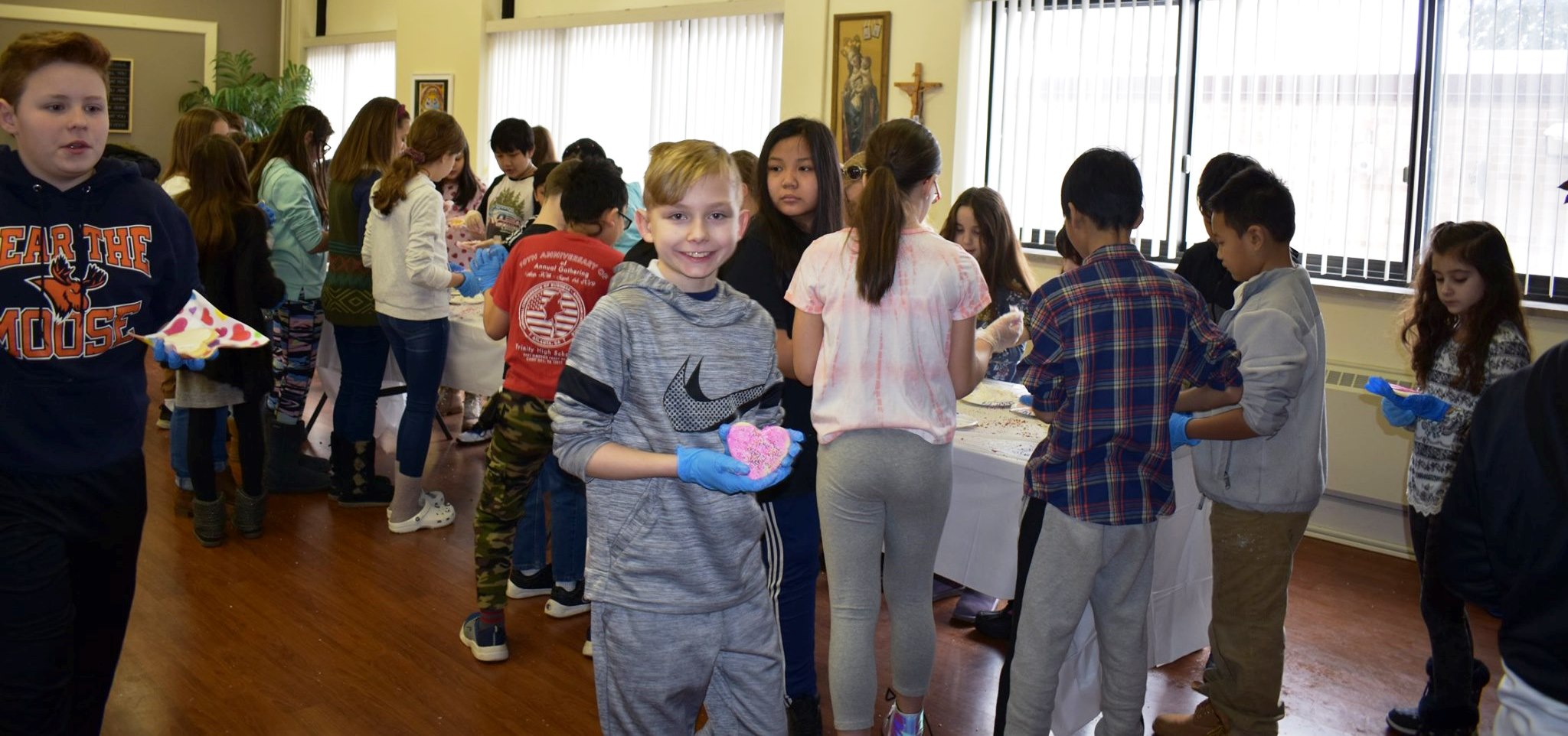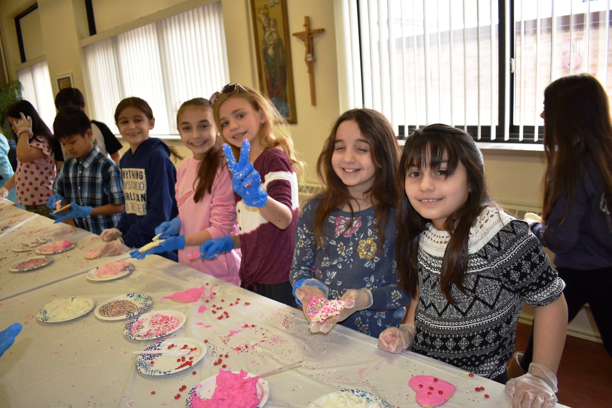 Students in our fourth-, fifth- and sixth-grade classes decorated 168 heart-shaped cookies for Valentine’s Day to donate to the Rescue Mission. Thank you to Leigh D’Agostino, our fifth-grade catechist who oversees this wonderful project every year, teaching the children the importance of doing for others. Thank you also to our fourth-grade catechists Josette and Rick Bilodeau and our sixth-grade catechists, Tricia and Joseph Rizzo. These images are courtesy of Terri Panuccio.