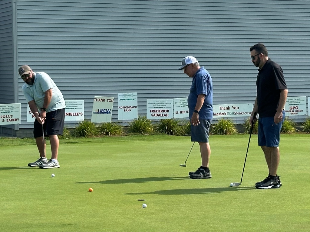 The 12th annual Mount Carmel / Blessed Sacrament Parish Golf Tournament teed off on Sunday, Aug. 17, at Twin Ponds Golf & Country Club in New York Mills. Nearly 100 golfers (and would-be golfers) participated in the tournament, which Father Jim began in 2013 as another fundraiser for the parish. (The tournament did not take place in 2020 due to the pandemic.) Participants were treated to goodie bags, bloody marys, food and drinks on the course and a prime rib dinner with all the fixings. There also were chances to win prizes on the course and raffles for items ranging from a TV, golf bag and other assorted baskets. All proceeds benefit the parish.