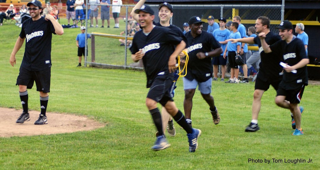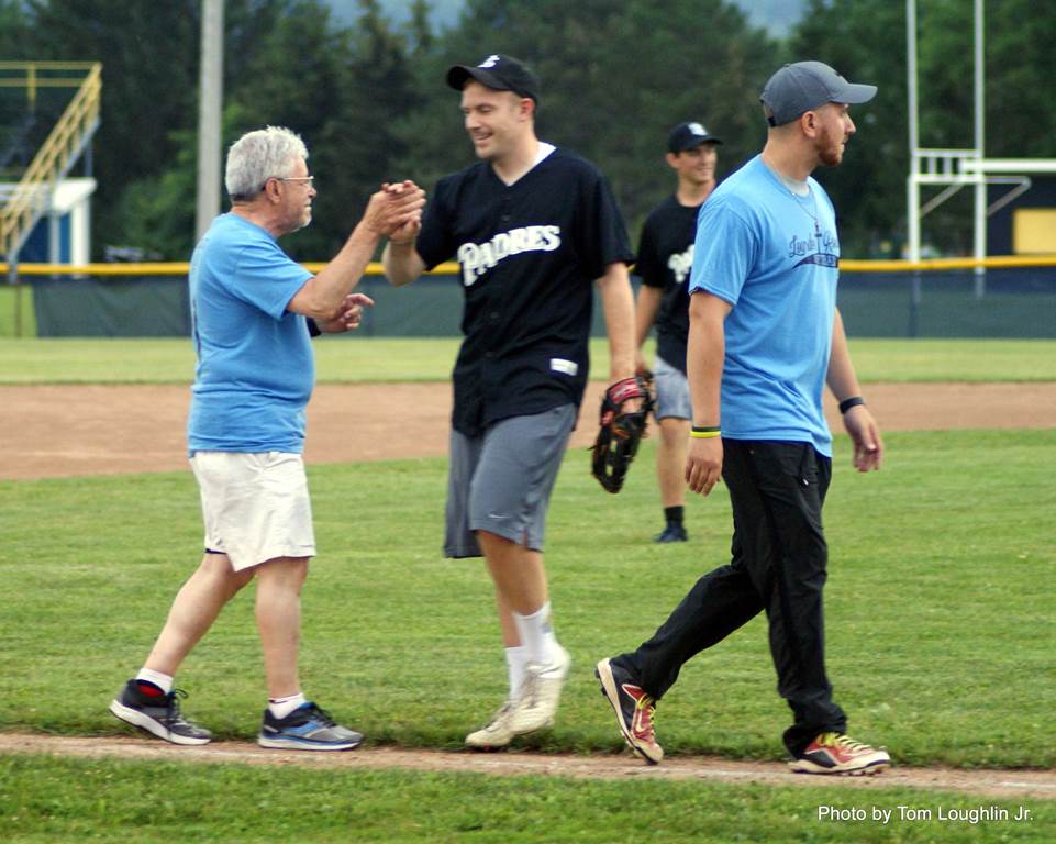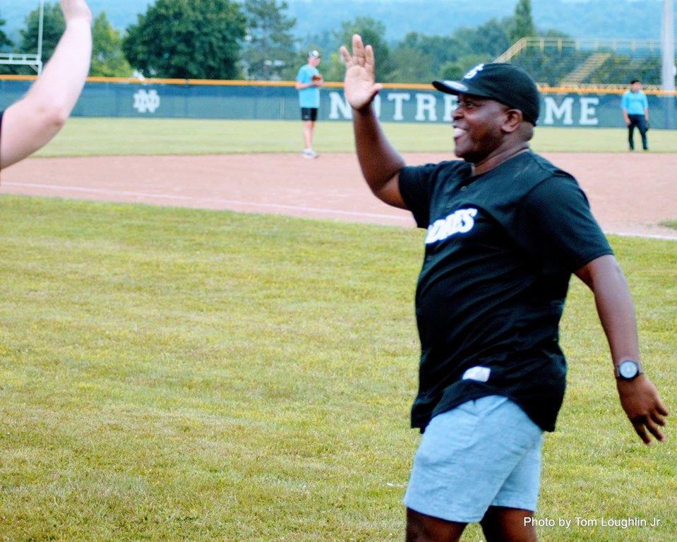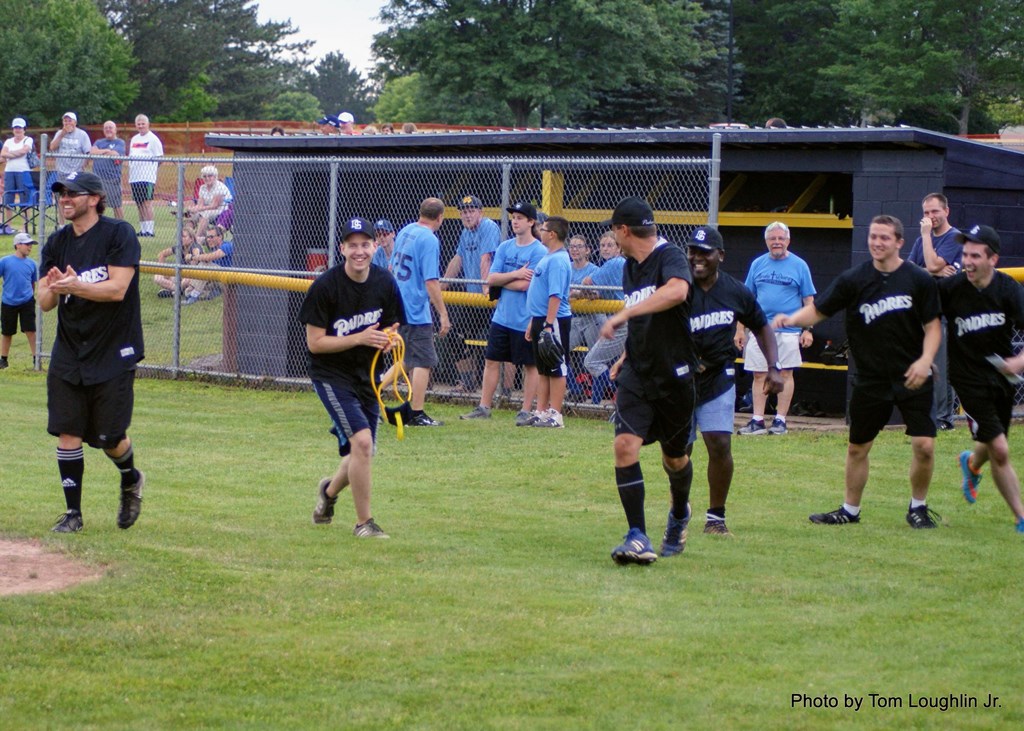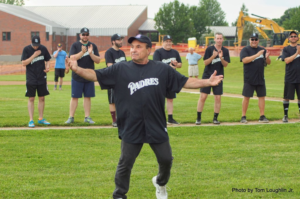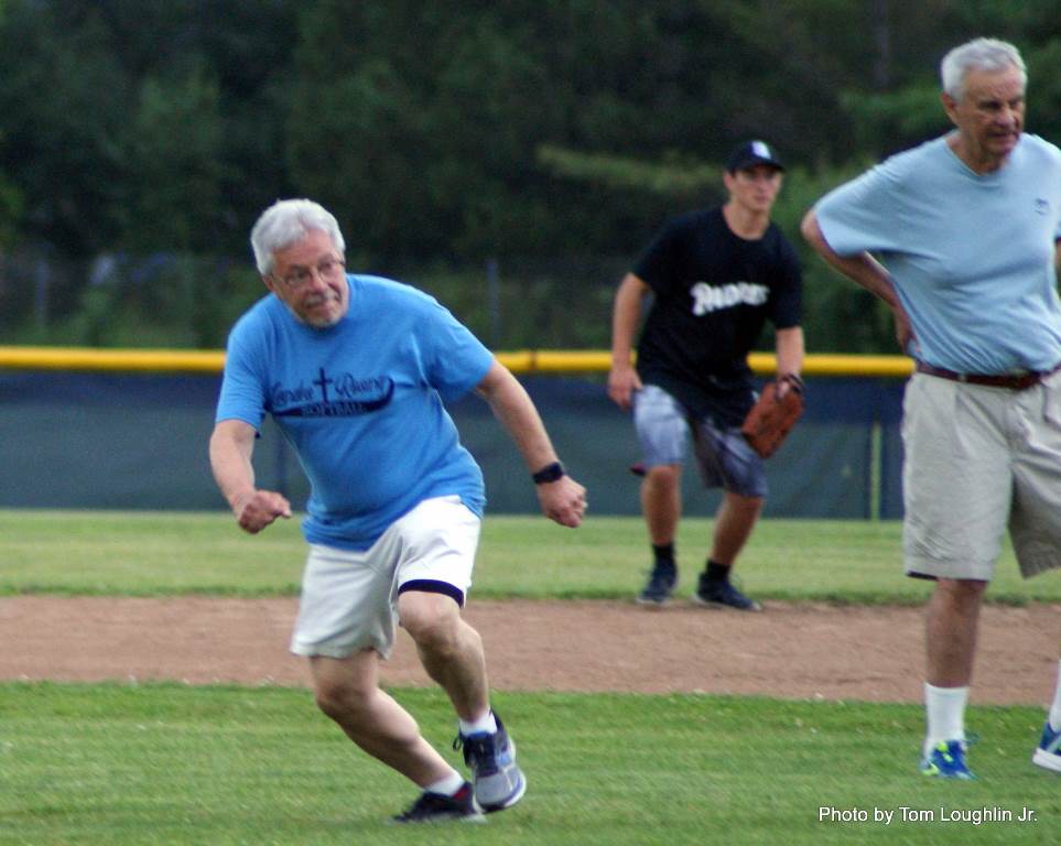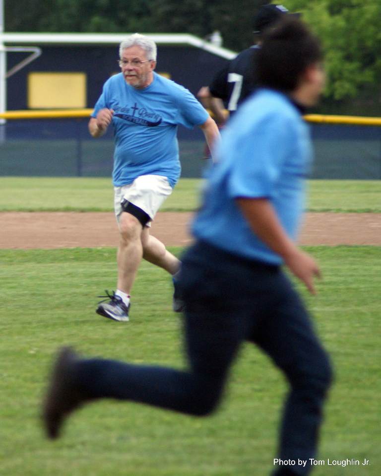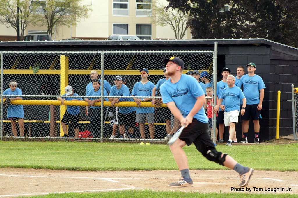Father Jim, along with Bishop-elect Douglas John Lucia and other priests and seminarians, played in the annual diocesan Men in Black softball game Sunday, July 28, 2019, at Notre Dame Junior-Senior High School. The Syracuse Diocese Padres, as the team is called, played a team of young people, supported in person by Father Joe Salerno. The game is played each year to promote vocations to the priesthood. It took place for the first time in the Eastern Region of the diocese and was well attended. Some images are courtesy of Tom Loughlin Jr.